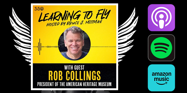 We are proud to welcome our supporters to check out this episode of the “Learning to Fly” podcast with host Bruce Mittman as he sits down with Rob Collings, President of the American Heritage Museum and the Collings Foundation.