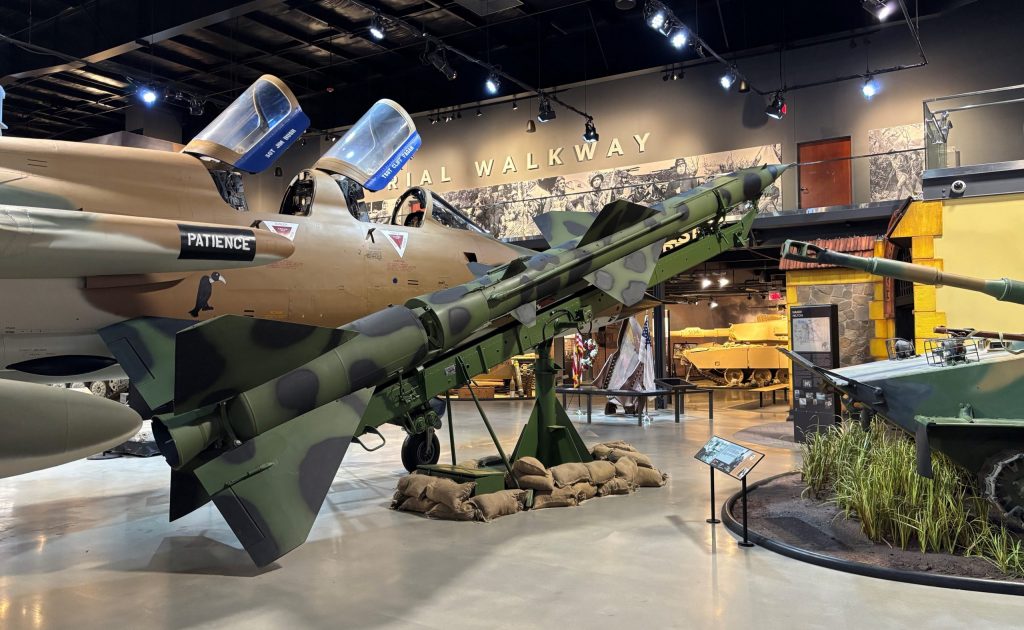 The American Heritage Museum proud to unveil the installation of a cosmetically restored S-75 Dvina—better known by its NATO designation, SA-2 “Guideline”— in authentic North Vietnamese markings in our Vietnam War gallery, positioned dramatically beside our F-105 Thunderchief configured for the legendary “Wild Weasel” mission. The SA-2 was a devastating anti-aircraft system during the Vietnam War and was responsible for over 206 American aircraft losses.