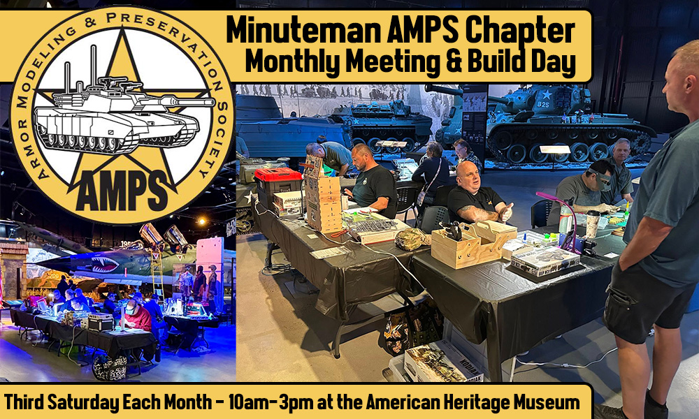 Join the Minuteman Chapter of the Armor Modeling and Preservation Society (AMPS) for a Monthly Meeting and Scale Model Build Day at the American Heritage Museum in Hudson, MA on the third Saturday of every month, from 10:00 AM to 3:00 PM.